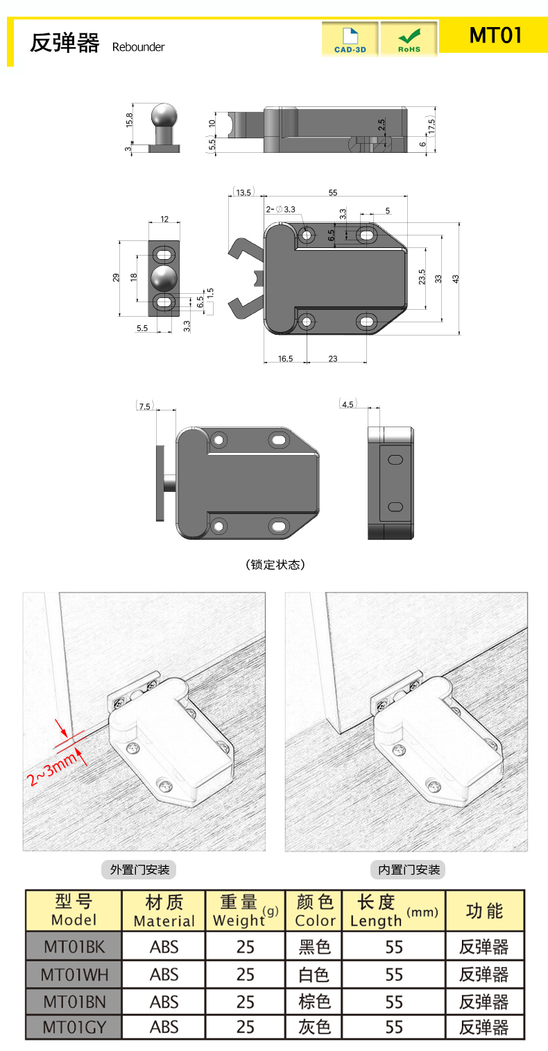 非磁性卡扣設(shè)計(jì),施壓即開,關(guān)門即鎖門,自帶反彈力,無需裝拉手