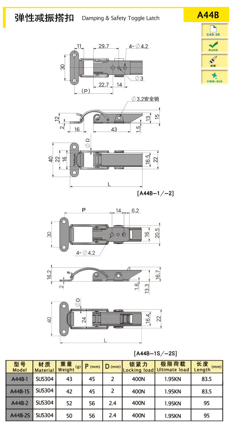 A44B-2S | 95 | SUS304 | 42.71 | 400 | 1950 | 自鎖,減振 | 下載 |